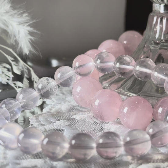 Le quartz rose, avec sa douce teinte rosée, est prisé comme la « pierre de l'amour et de l'harmonie ». Il ouvre le cœur à la compassion, encourage l'amour de soi et enveloppe celui ou celle qui le porte d'une énergie douce et apaisante. Son éclat subtil le rend intemporel, aussi bien en joaillerie qu'en cristal de guérison.